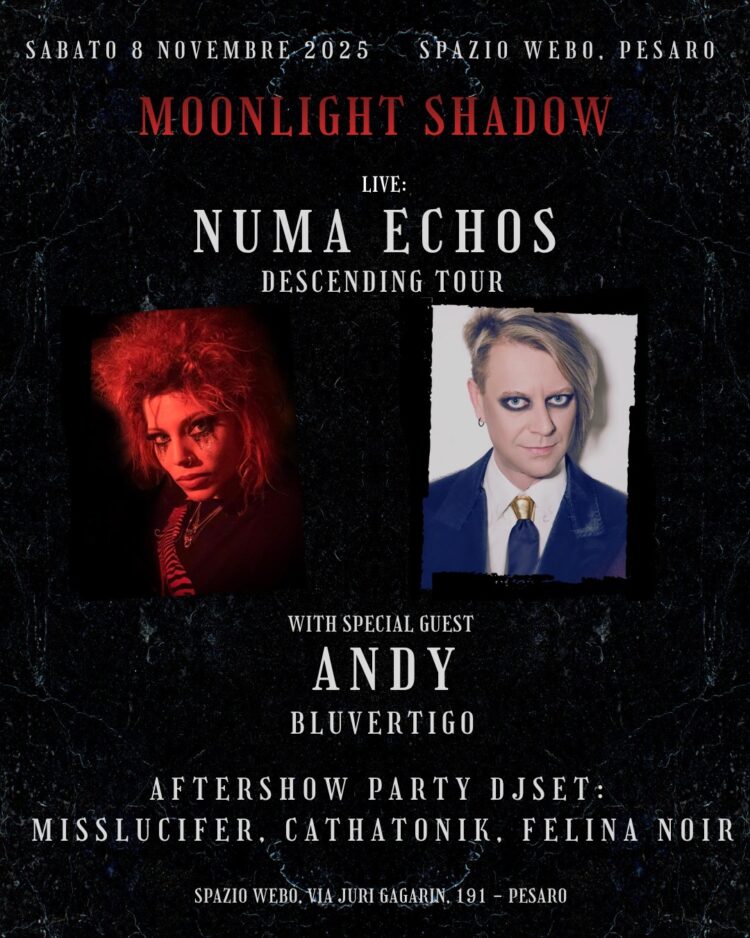 Numa Echos will play live at Moonlight Shadow night at Spazio Webo in Pesaro Saturday 8th Novembre 2025 and will propose his electronic rock repertoire, heavily influenced by industrial, dark […]